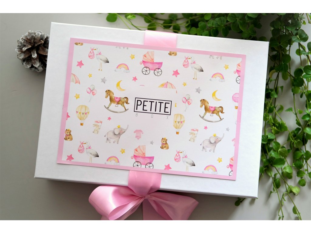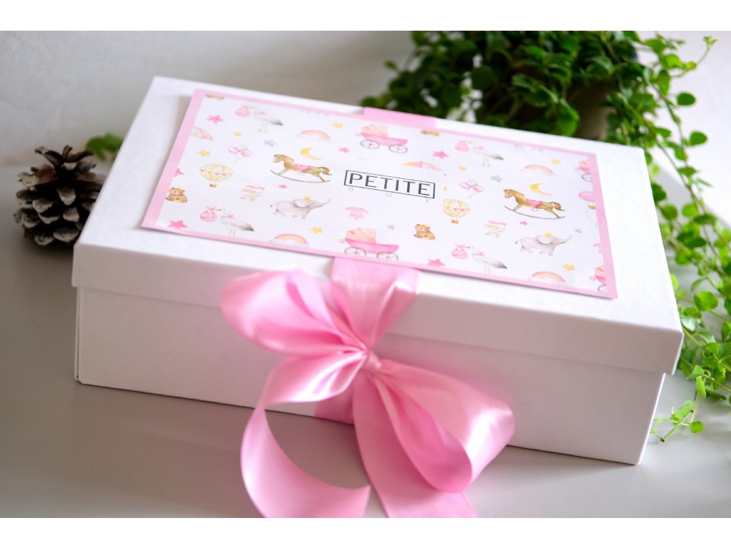 Spolu s produkty si kupujete také dárkové balení. Produkty jsou zabaleny v bílé dárkové potahované krabici spolu s dekorační výplní. Krabice je dále opatřena mašlí a papírovou dekorací s originálním dětským designem.
